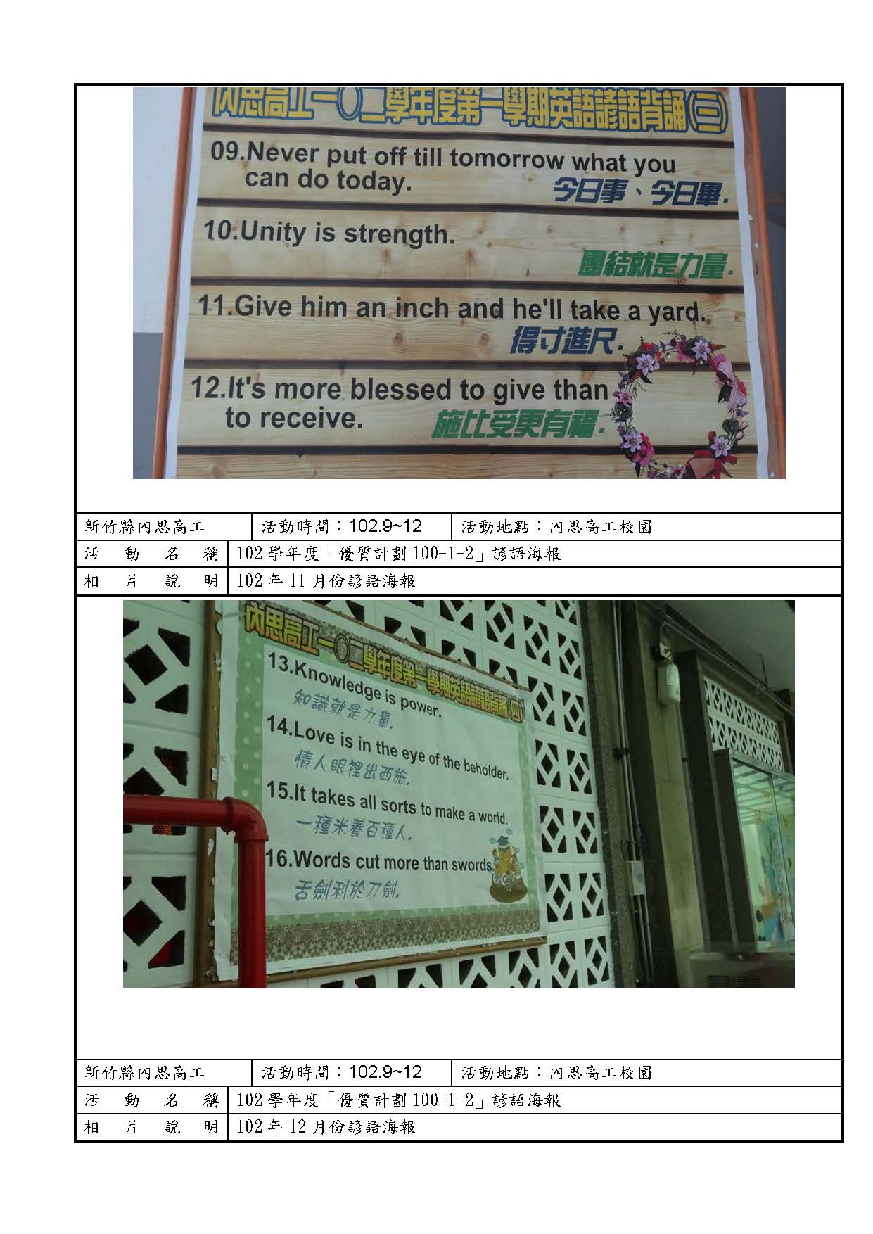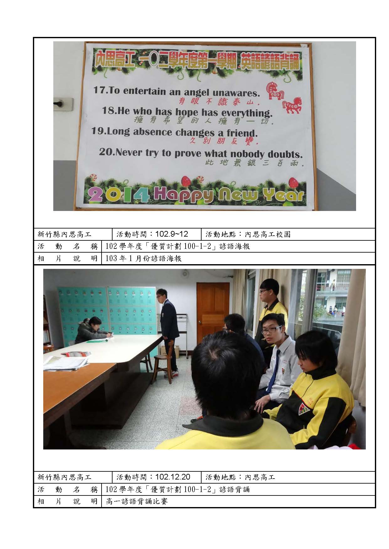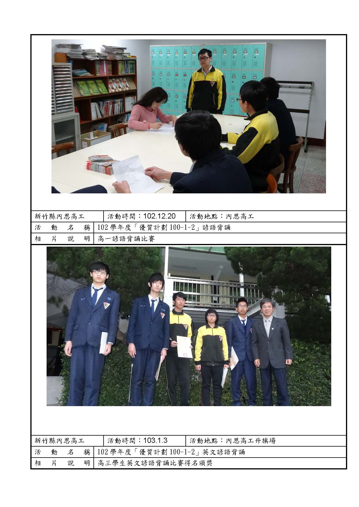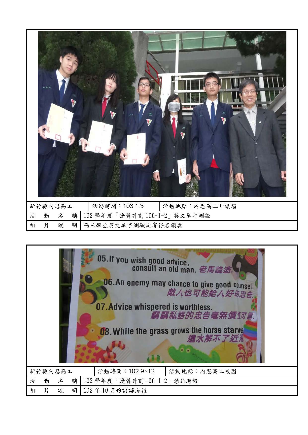 102高職優質化各子計畫成果照片 / 100-1提高學生英文學習成效