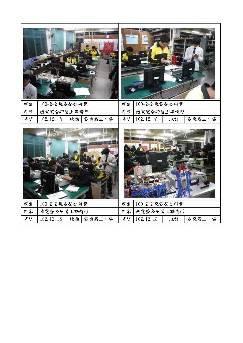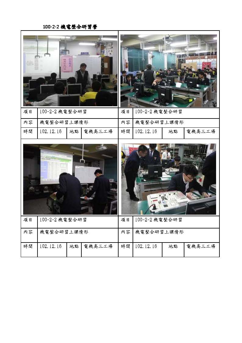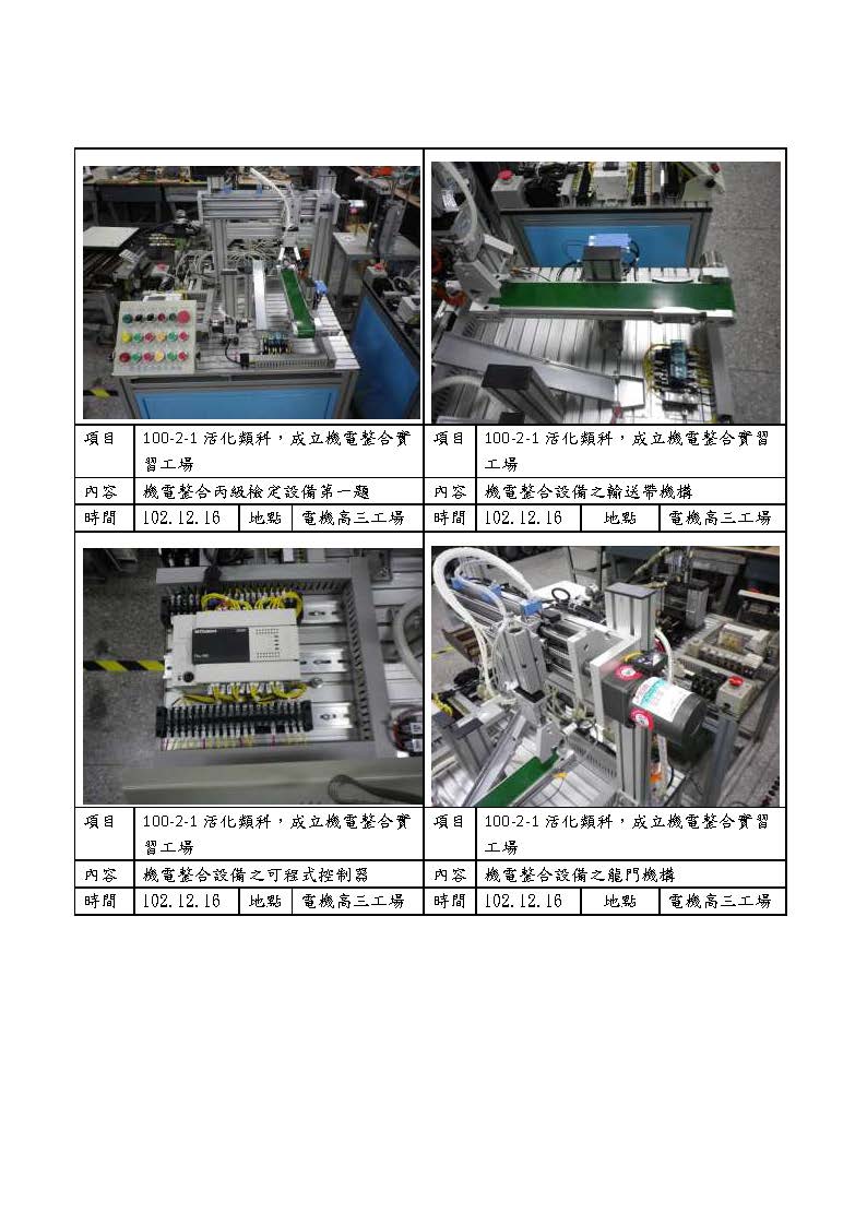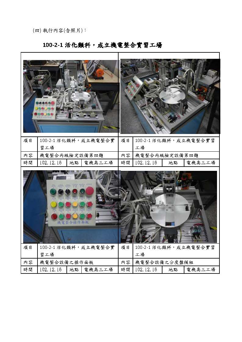 102高職優質化各子計畫成果照片 / 100-2活化類科,建構機電整合源