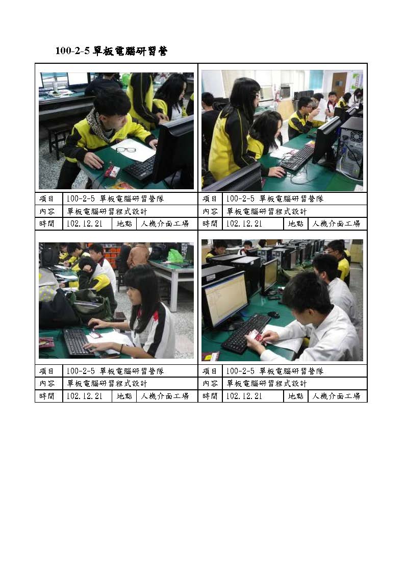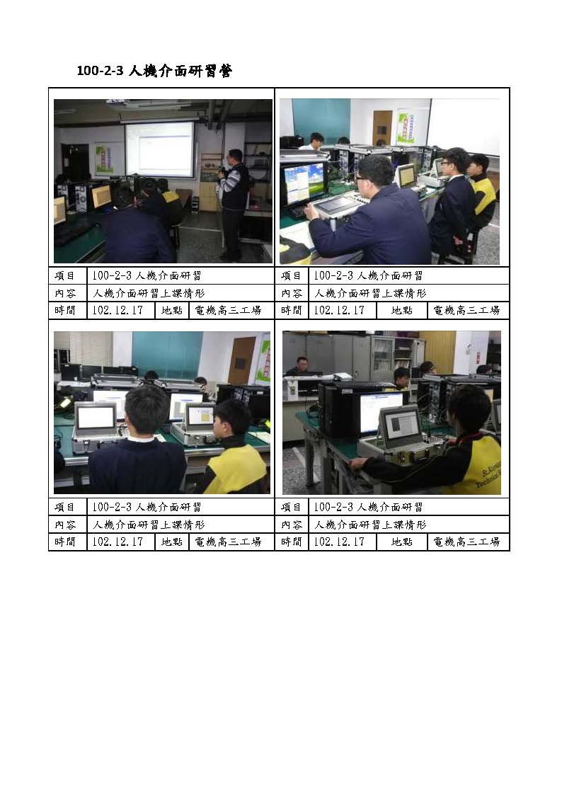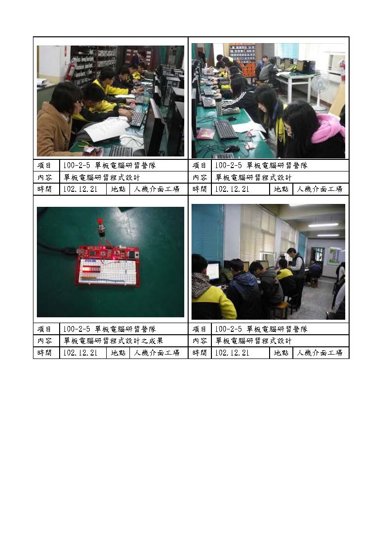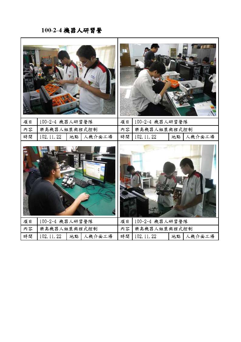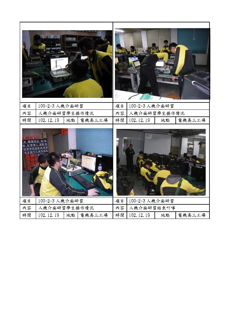 102高職優質化各子計畫成果照片 / 100-2活化類科,建構機電整合源